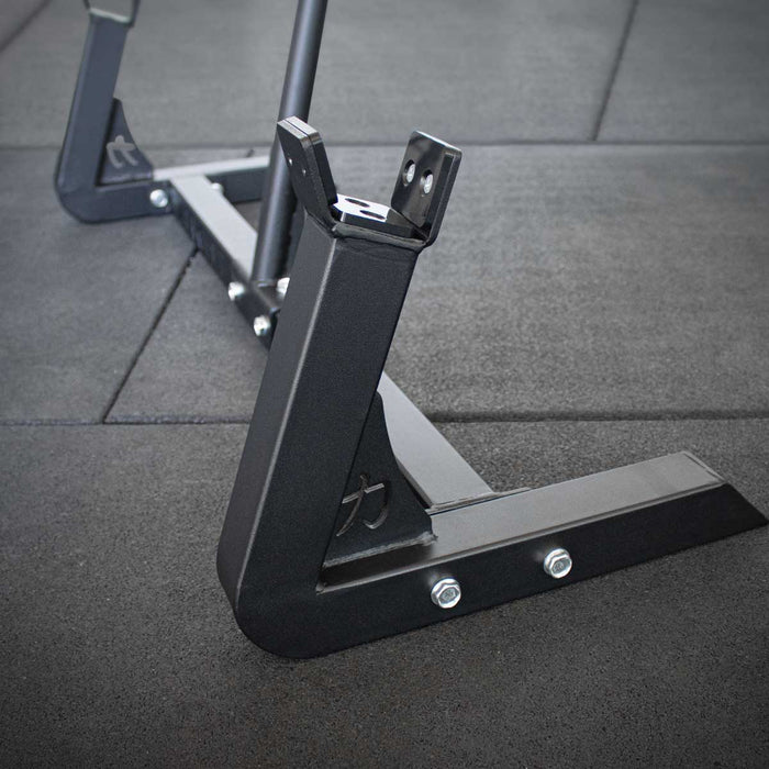 The Deadlift Jack is a sturdy tool with a total width of 1000 mm and a lifting height of 250 mm, allowing it to easily handle over 500 kg on a stiff bar and over 400 kg on a deadlift bar. It’s designed to work with barbells up to 50 mm in diameter, so even axle bars are supported! With its 1-meter handle, you’ll have *excellent* leverage to use the Jack. The solid foot design keeps things stable when the bar is loaded, and the rounded front is extra comfortable when setting on and off. Plus, it disassembles into four smaller pieces, making it super practical to transport it to your next competition.