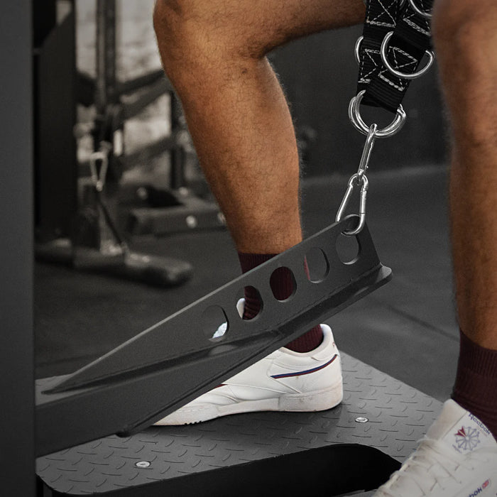 Theelevated squat platform is designed for full range of motion, enabling you to squatAss to Grassand maximize muscle engagement. We’ve rigorously tested this machine with 525kg, but itcan handle up to a whooping 750kg.