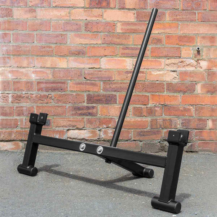 The Deadlift Jack is a sturdy tool with a total width of 1000 mm and a lifting height of 250 mm, allowing it to easily handle over 500 kg on a stiff bar and over 400 kg on a deadlift bar. It’s designed to work with barbells up to 50 mm in diameter, so even axle bars are supported! With its 1-meter handle, you’ll have *excellent* leverage to use the Jack. The solid foot design keeps things stable when the bar is loaded, and the rounded front is extra comfortable when setting on and off. Plus, it disassembles into four smaller pieces, making it super practical to transport it to your next competition.