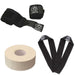 Essentials for the Olympic Weightlifter. Straps to aid grip, zinc tape to patch up their hands, and wrist wraps to give support to the wrists and help prevent injury.
