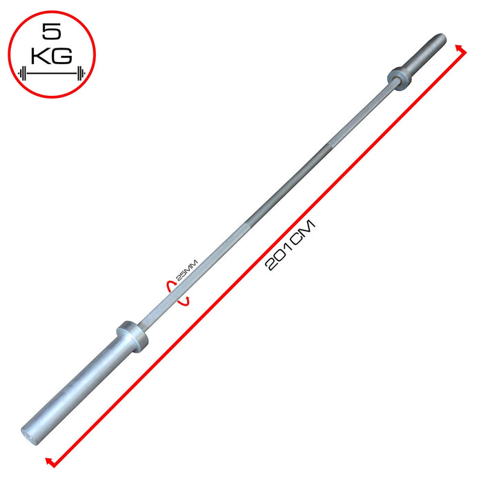 Material: Aluminium Weight: 5 kg Total length: 2010 mm Length between sleeves: 1320 mm Shaft diameter: 25 mm Loading pin diameter: 50 mm Load capacity: Rated up to 20 kg