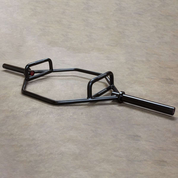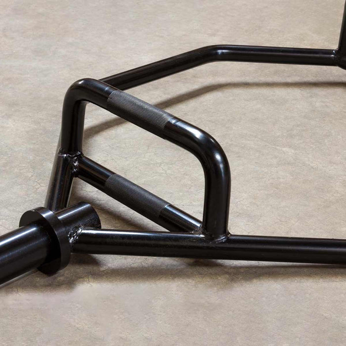 The trap hex bar weight is 27kg unloaded and made of ultra-durable Q235 steel which is known for itstoughness, a great quality for a bar that can be used forup to 400kgload. To ensure you’ll be able to maintain a firm grip, theknurling is medium. This Olympic trap bar features 32.5cm of loadable sleeves for maximum weight, and the sleeves have a diameter of 50mm. With a total of 160cm in length, it’sideal for smaller training spaceslike basements or garages, while it's still long enough to be placed on a rack. You canchoose between two handle heightsby simply flipping the hex bar over.