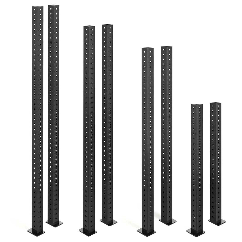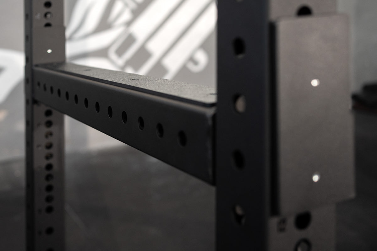Set Up The Optimal Lifting Station The compact setup provides an ideal environment for squatting, benching, various pressing exercises, pull-ups, and more. This rack allows you to perform any powerlifting lift with safety. The J-Hooks can be positioned at either the front or back of the cage for added convenience. The numbered uprights have a laser-cut numbering on both the front and back, making handling even simpler. Constructed with sturdy 75mm x 75mm uprights made from durable 3mm steel, these racks offer commercial-grade quality – perfect for both ambitious home setups and professional facilities. Rated to support a 500kg static load, they can withstand heavy and intense lifting sessions. All Compact Racks must be bolted into the floor, otherwise safe use cannot be guaranteed. Alternatively, add Riot Small Feet to the front of the rack for safe use. To increase the overall stability of the rack, add another 1075 Crossmember at the bottom. Available in three heights, these racks fit seamlessly into any gym space, including garage setups or areas with low ceilings.
