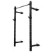 Remove the six pins and the wall-mounted fold up squat rack stores against the wall and takes up minimal space. Whether you require space for other training routines or are done with training and want to keep your gym neat, the 2.32m foldable rack with its pull-up bar is discreet & out of the way. The bottom crossbeam is adjustable in height. Minimum 10cm from the ground, maximum 29cm from the ground.