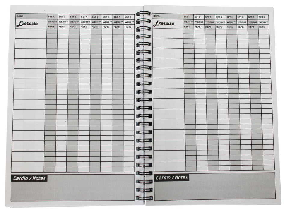 A good book for writing your exercise sets in reps and weights is already in columns for you.