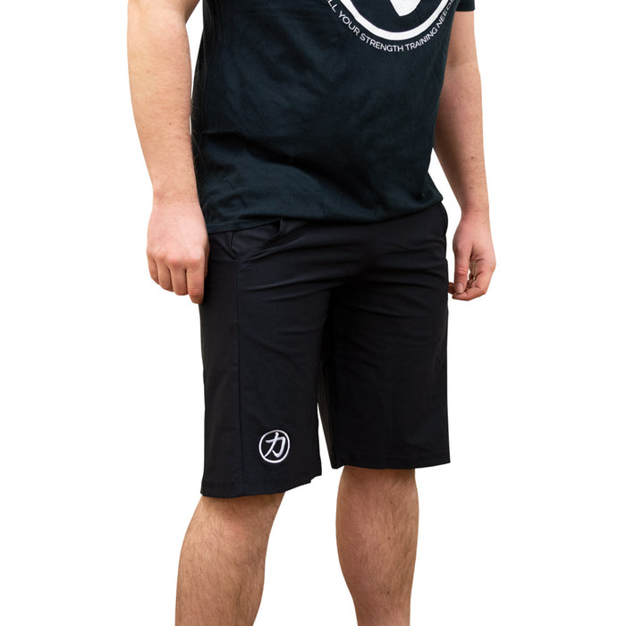 Strength Shop Training Shorts, in black with the Strength Shop logo stitched on the side.