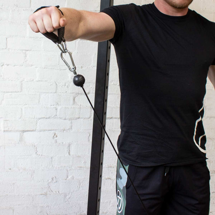 The neoprene material makes it comfortable to wear and the double D-rings provide a secure, stable loop to hook the cable machine onto.